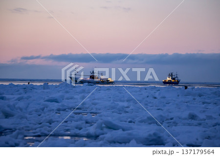 流氷と漁船