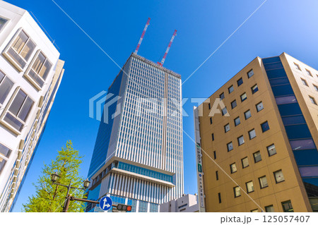 日本の横浜都市景観 日本一おめでとう…関内駅前の横浜市旧市庁舎街区活用事業新築等工事などを望む