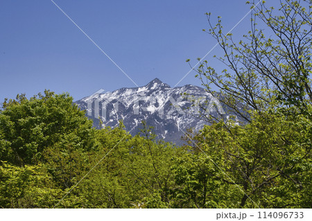 しろ池からの雨飾山の雄大な眺め 新潟県糸魚川市