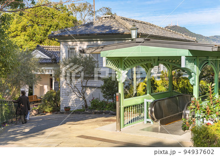 [九州・長崎] グラバー園の自由亭喫茶室に導くレトロな屋根を聳えるエスカレーター。