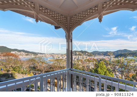 [九州・長崎] グラバー園の旧三菱第2ドックハウスの外廊下から見た俯瞰図のパノラマ。