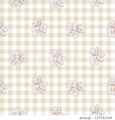 Pink Beige Gingham Check Hand Drawn Background Overlay