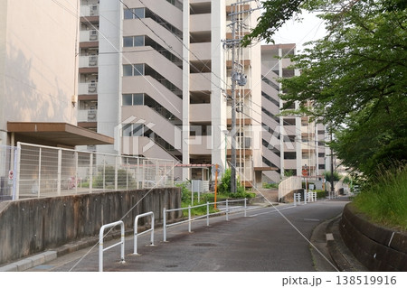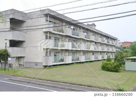 集合住宅、規則的に並ぶベランダが特徴的なコンクリート造のマンション