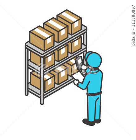 仕分けやピッキングをする作業員のアイソメベクターイラスト素材