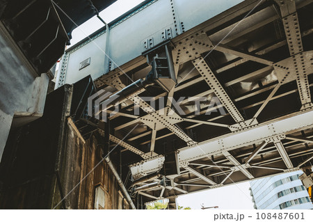 鉄道のガード下の鉄骨の骨組み