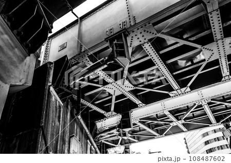 鉄道橋の桁下 JR総武線浅草橋駅 2024.07 c-4 モノクロ
