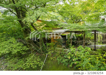 水彩画風 伊豆修善寺 桂川沿いの温泉旅館 静岡県伊豆市