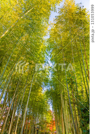 【静岡】秋の修善寺 桂橋の欄干越しに眺める竹林の小径と桂川