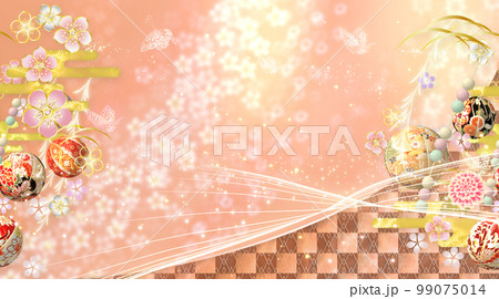 春の花と手毬と蝶々の華やかな和風の背景