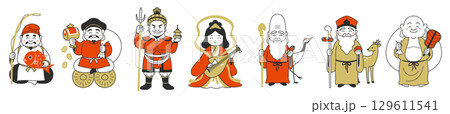 七福神 筆タッチ手描き 立ちポーズイラストセット