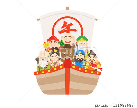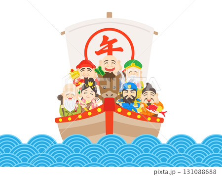 午年の、七福神を乗せた宝船のイラスト|午年素材