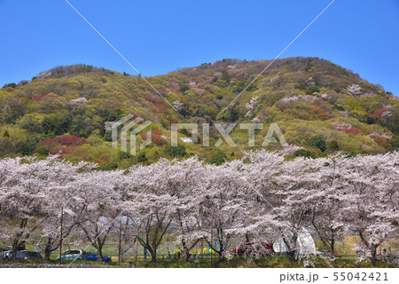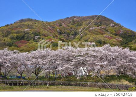 桜並木と山桜咲く里山 栃木市大平町ブドウ団地案山子の里