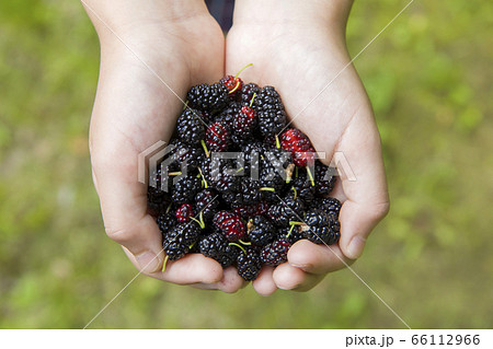 桑の実 マルベリー どどめを持つ子供手元