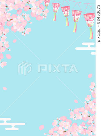 桜のフレーム背景 コピースペース付き 春のバナー 春の背景 テンプレート素材 桜餅と団子のイラスト