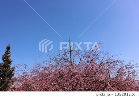 4月の青空の中で満開になった「三春滝桜」の子孫(2)