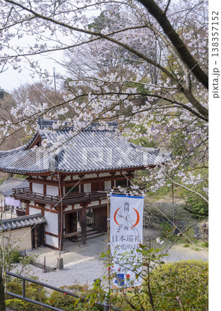 岡寺 仁王門 桜の季節 --奈良県高市郡明日香村岡--