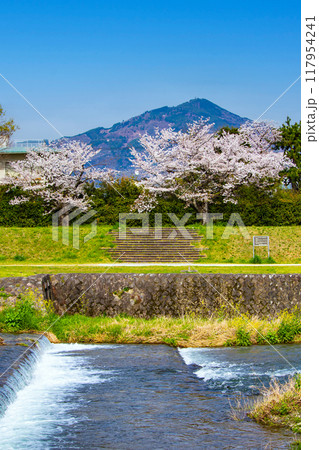 【京都風景】賀茂川より望む桜と山(比叡山/大文字山)