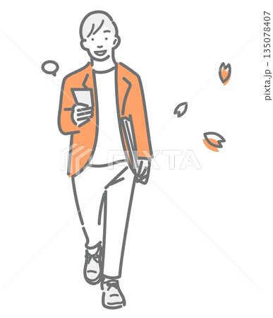 さわやかな気持ちで出勤する笑顔の男性 シンプルでお洒落な線画イラスト