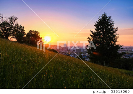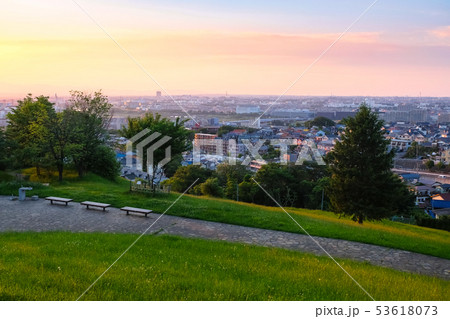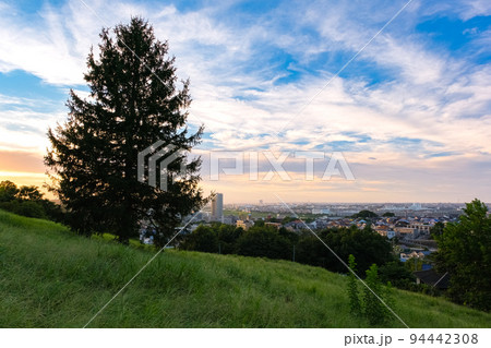東京都多摩市 聖蹟桜ヶ丘、夕暮れの桜ヶ丘公園、ゆうひの丘