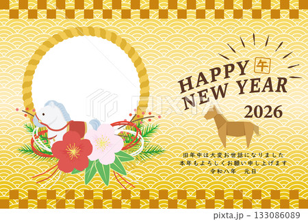 可愛い馬のポップな年賀状テンプレート 2026