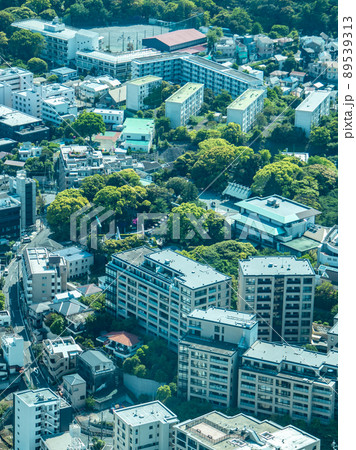 日本の横浜都市景観 横浜の伊勢山皇大神宮などを望む