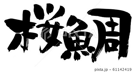 筆で描いた、魚の「タイ」と桜。真鯛、マダイ、鯛。