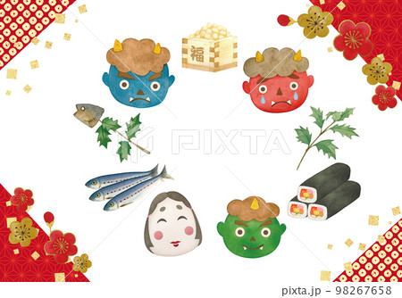 水彩で描いた節分のイラスト