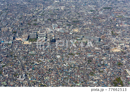 東武伊勢崎線の西新井駅から梅島駅付近を空撮