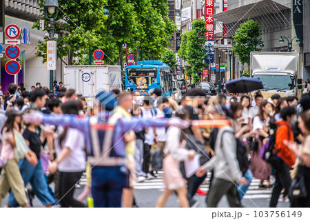 日本の東京都市景観 梅雨入りきょう…感染拡大“制止”…5類移行から1か月、渋谷はマ無しの方多数=8日