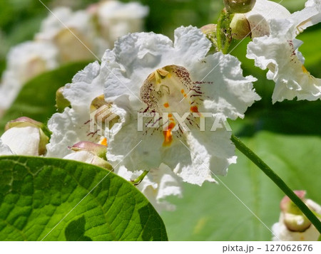 Flowers of Indian bean tree Catalpa bignonioides, also known as southern catalpa or cigar tree