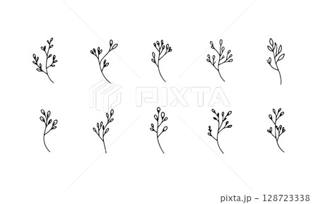 Thin Leafy Twigs. Thin Leafy Twigs features simple hand-drawn branches with small leaves in a clean minimal linear design.