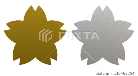 桜の3D立体アイコンセット 金銀 梨地質感のシルエット 和モダンな装飾パーツ 透過背景素材