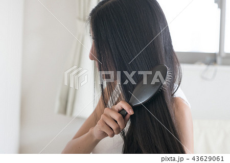 長い髪をブラッシングする若い日本人女性