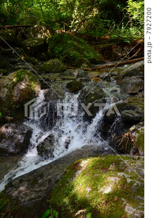 棒ノ嶺の沢と渓谷を歩く女性登山者