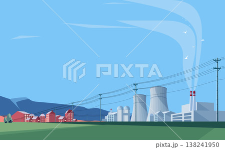 The urban landscape of towns and power station and vertical utility poles