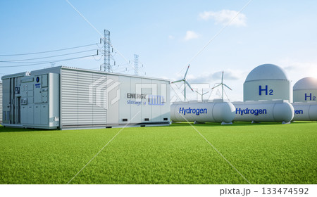 Alternative energy concept with group of energy storage systems or battery container units with various sources of energy