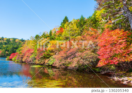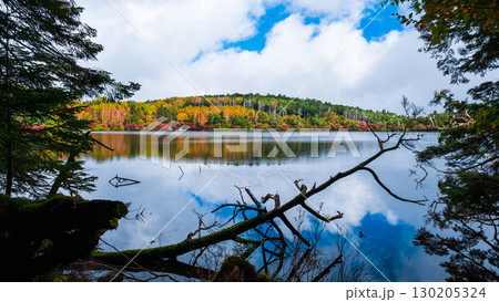 【霧素材】【紅葉素材】霧に包まれた錦秋の白駒の池【長野県】