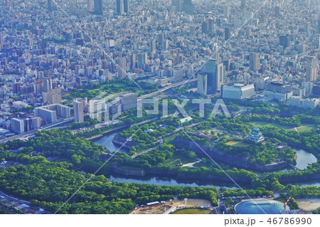 大阪市中央区大手前付近のビルからの景色大阪城の近く街並み谷町筋沿い