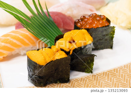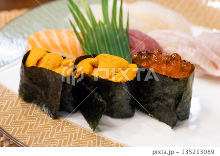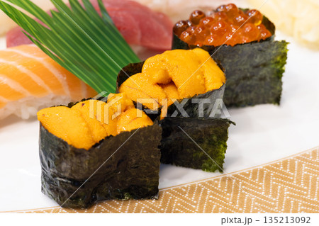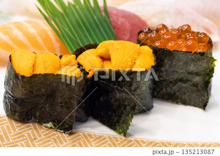 おいしい北海道のウニとイクラの軍艦巻きなどの握り鮨