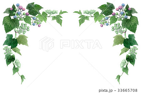秋〜冬の植物、紫色に紅葉して赤い実を付けたヒヨドリジョウゴの水彩画イラスト