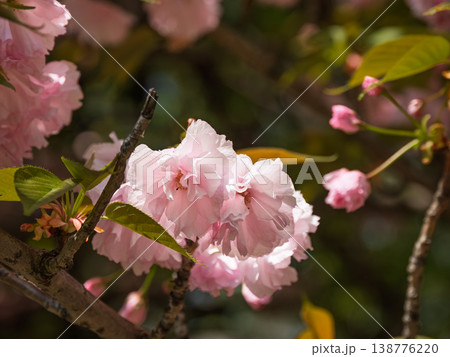 八重桜の花びらをクローズアップ 柔らかな光に包まれた春のディテール