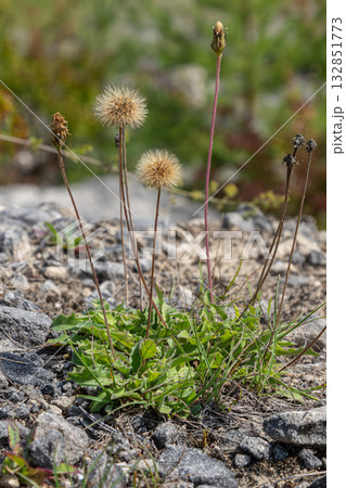 Mouse-ear hawkweed Pilosella officinarum growing naturally among rocks in a sunny meadow during early summer