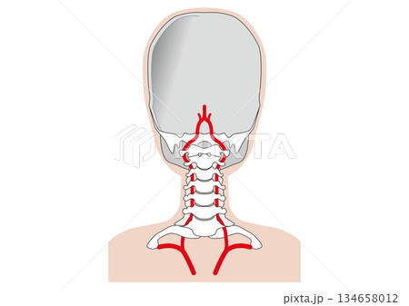 人体 椎骨動脈の仕組み うしろから見た図 首の骨(頚椎)の中を通って脳に血液を供給する