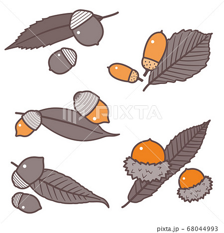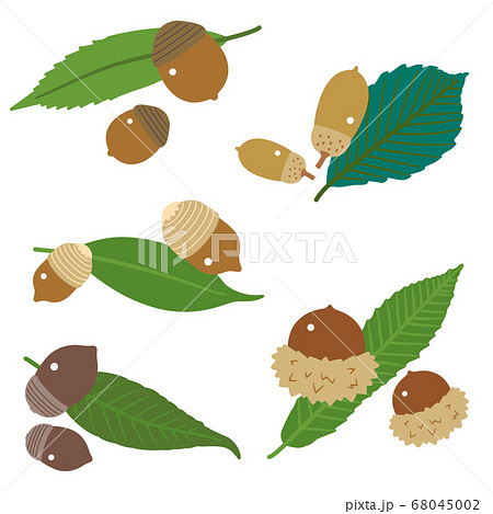 どんぐりの実と葉セット/クヌギ・カシ・ナラ/線なし