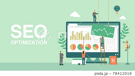 SEO (サーチエンジン最適化・検索エンジン最適化) コンセプト ベクターバナーイラスト