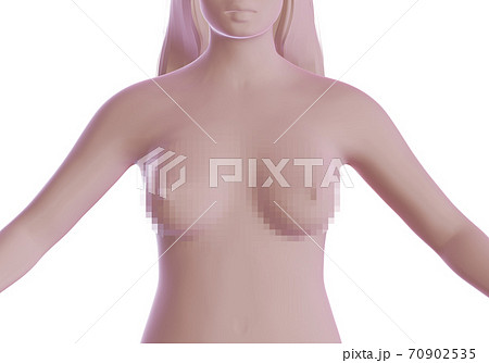 Woman naked bust covered by pixels, prohibited content and adult content concept, 3d render