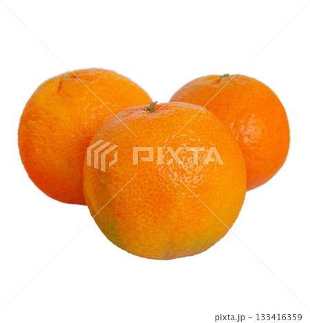Three tangerines. Citrus fruit orange mandarin isolate on white background.