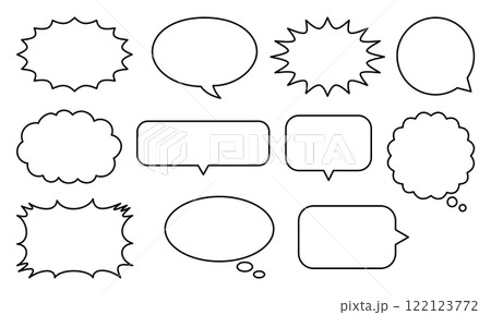 今っぽいシンプルなふきだしのイラスト素材 吹き出し フレーム 枠 フキダシ セリフ 話す コメント