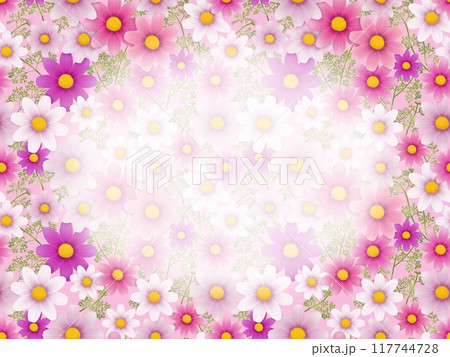 Semicircular frame, swag of pink, purple cosmos flowers. Watercolor illustration of template for cards for Mother's Day, Valentine's Day, fabric, interior, perfume, aromatherapy, alchemy, magic