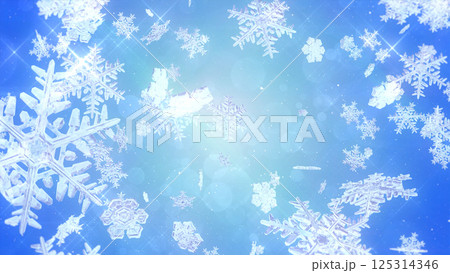 周囲に散らばる雪の結晶 - ブルー背景